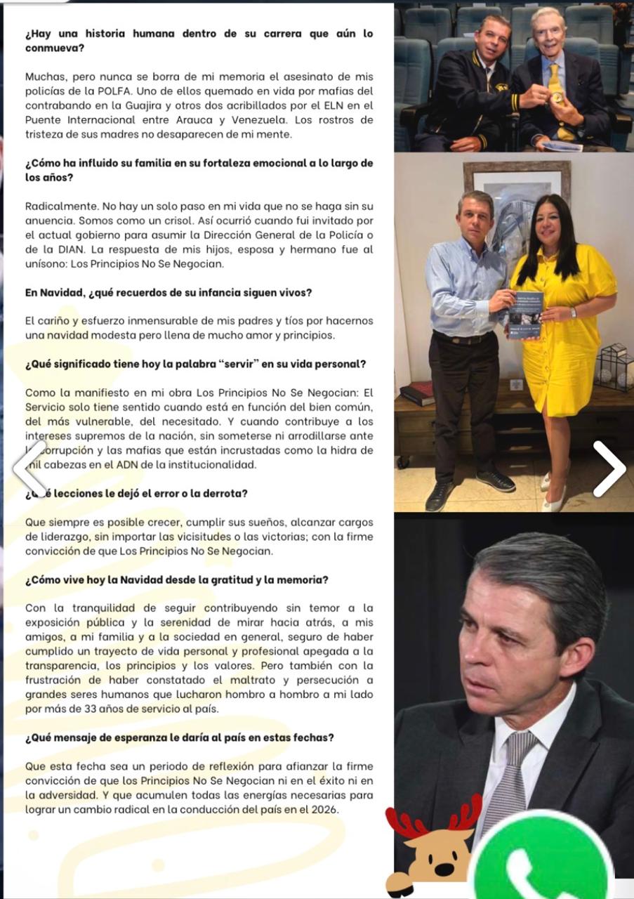 Más allá del uniforme, el general (r) Juan Carlos Buitrago Arias se define por una convicción que atraviesa toda su vida pública y privada: los principios no se negocian. Padre, esposo e hijo comprometido, sostiene que el amor, la unidad familiar y la ética son la base de una sociedad más justa.