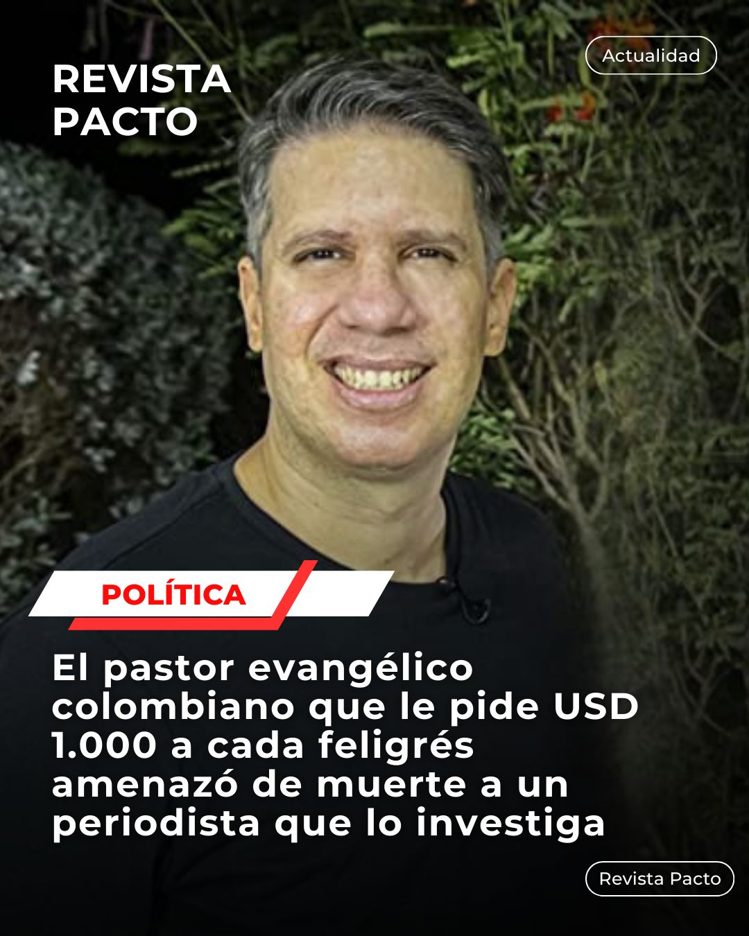 Torres publicó en noviembre un artículo en el que expuso el salario mensual del líder cristiano, además de su pedido de 4 millones de pesos (unos 1.330 dólares) a cada feligrés para construir una iglesia, según su investigación.
